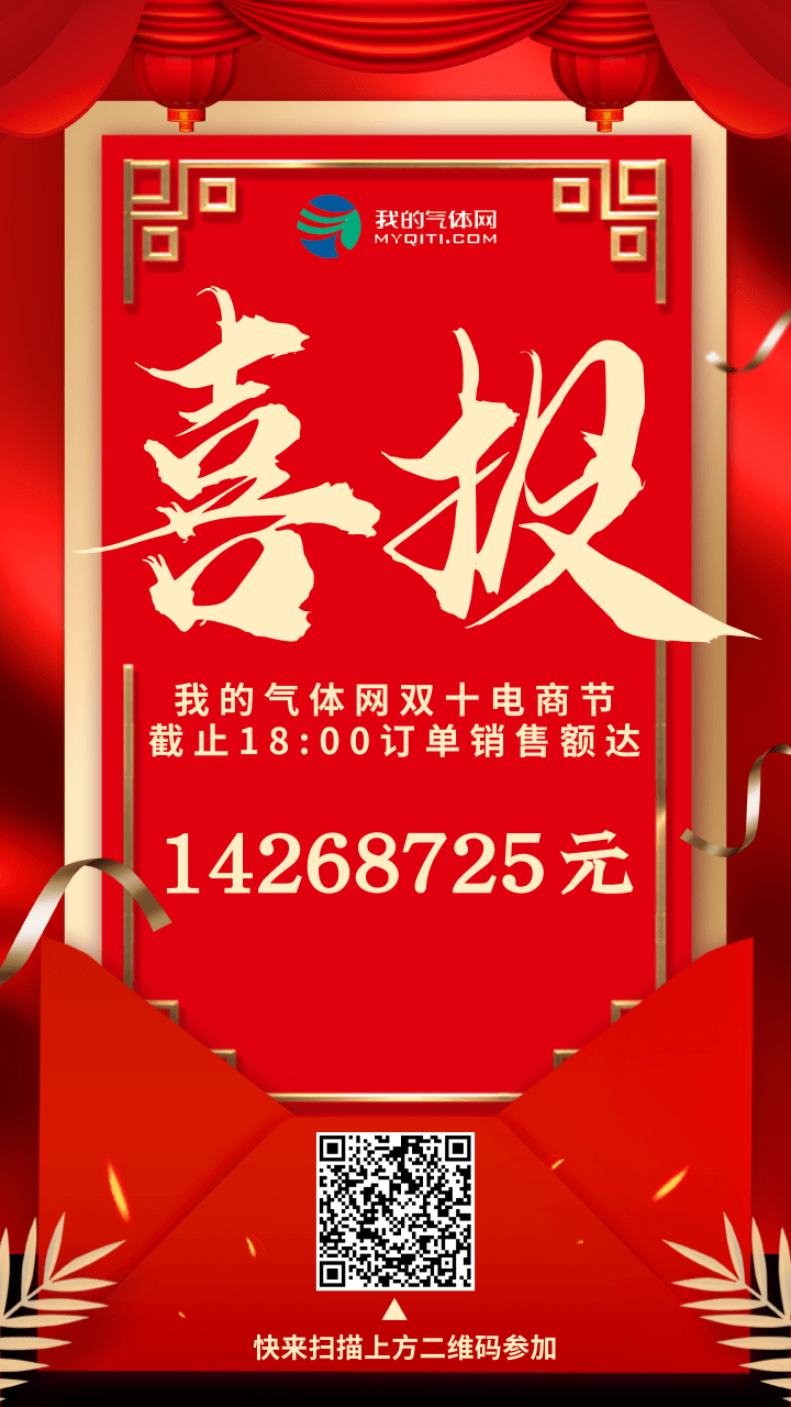 截至10月10日18點(diǎn),2020年我的氣體網(wǎng)雙十電商節(jié)活動(dòng)當(dāng)天,平臺(tái)訂單銷售額達(dá)1426萬!